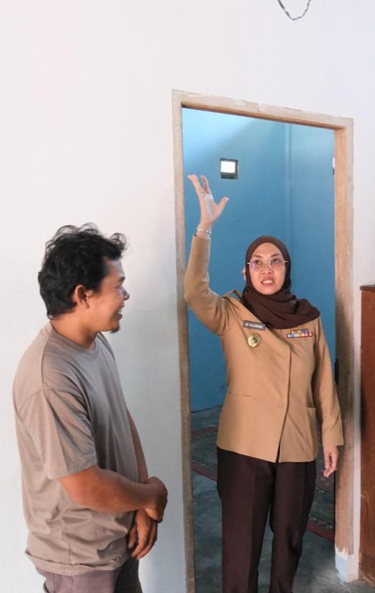 Bupati Gowa Hj Sitti Husniah Talenrang saat melakukan peninjauan rumah masyarakat ekstrim yang sudah dibedah.