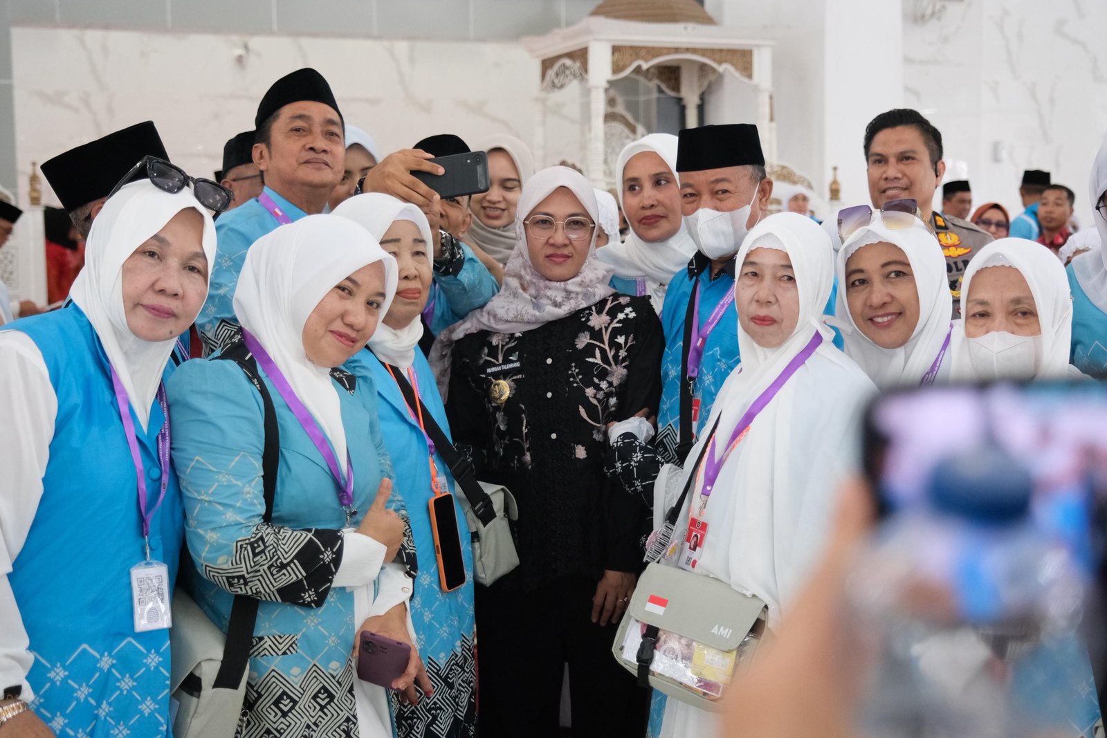 Bupati Gowa Sitti Husniah Talenrang bersama rombongan jamaah haji Kab. Gowa kloter pertama.