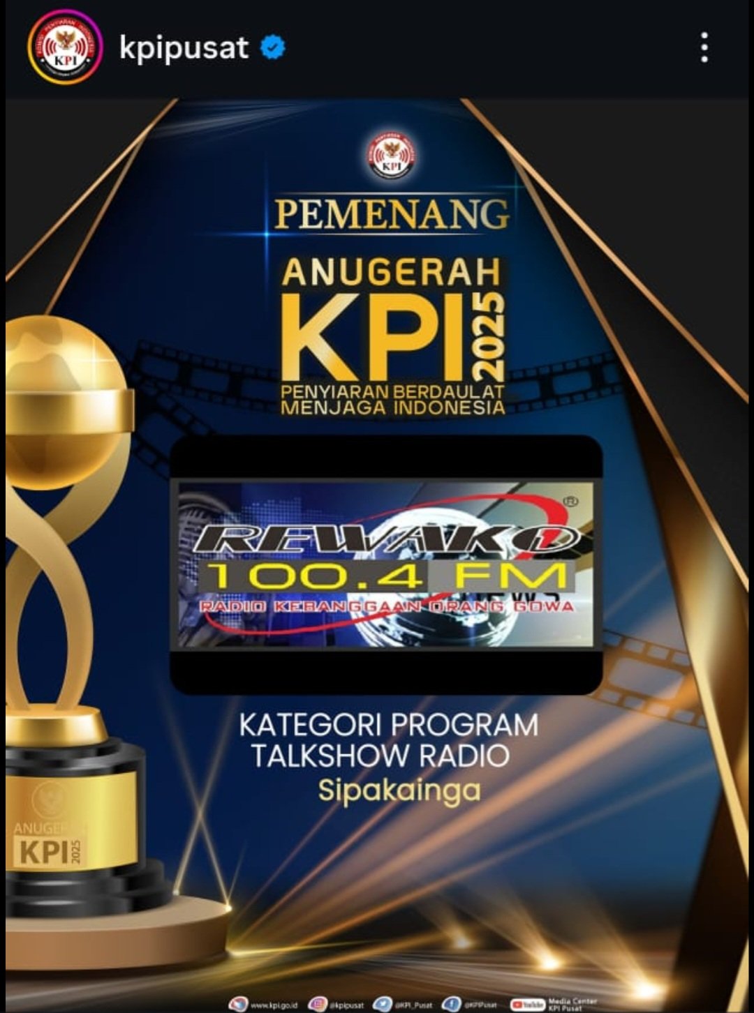 Radio Rewako Gowa FM Raih Penghargaan KPI Award 2025 Kategori Program Talkshow