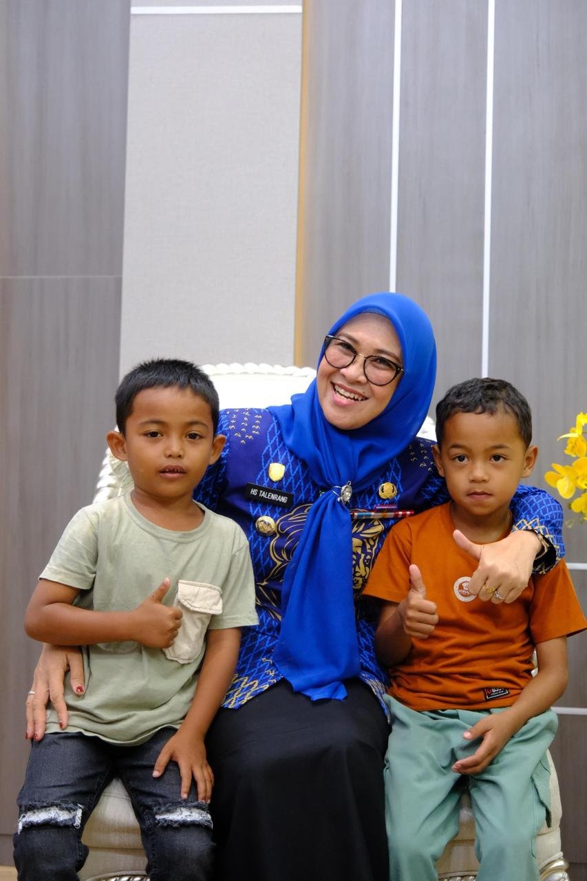 Bupati Gowa Hj Husniah Talenrang bersama, Samsul dan Aidil. --foto/humas gowa--