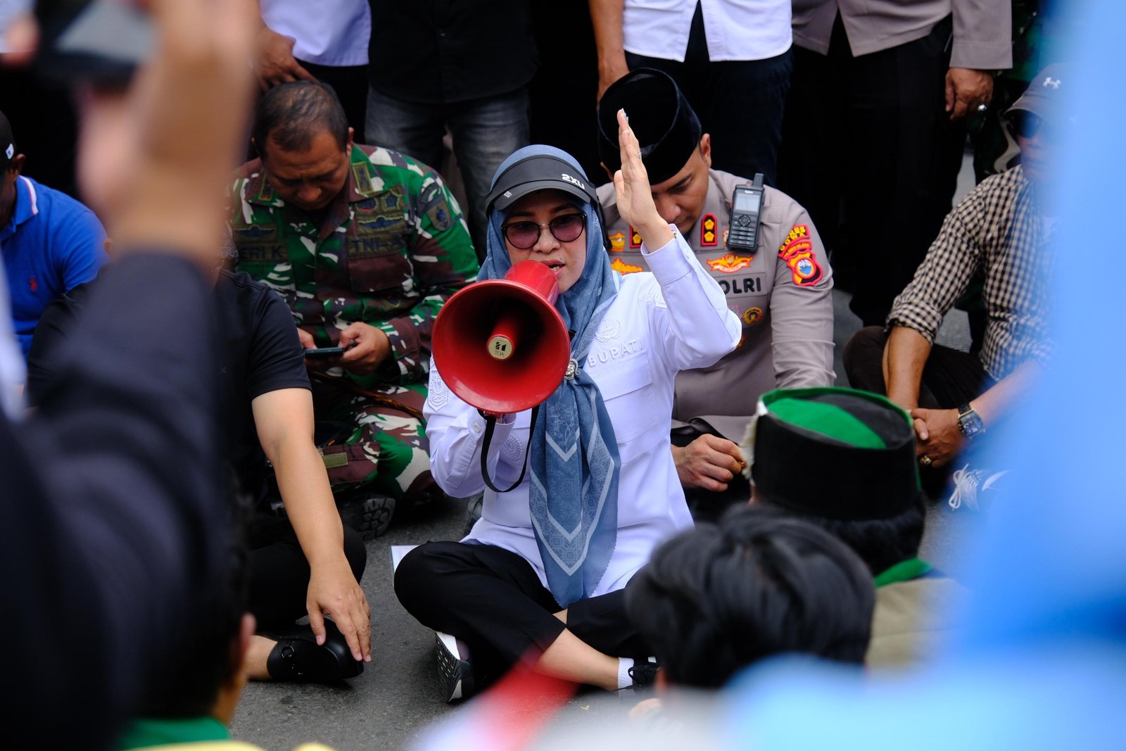 Bupati Gowa Hj Husniah Talenrang saat menemui aksi demo Cipayung Plus