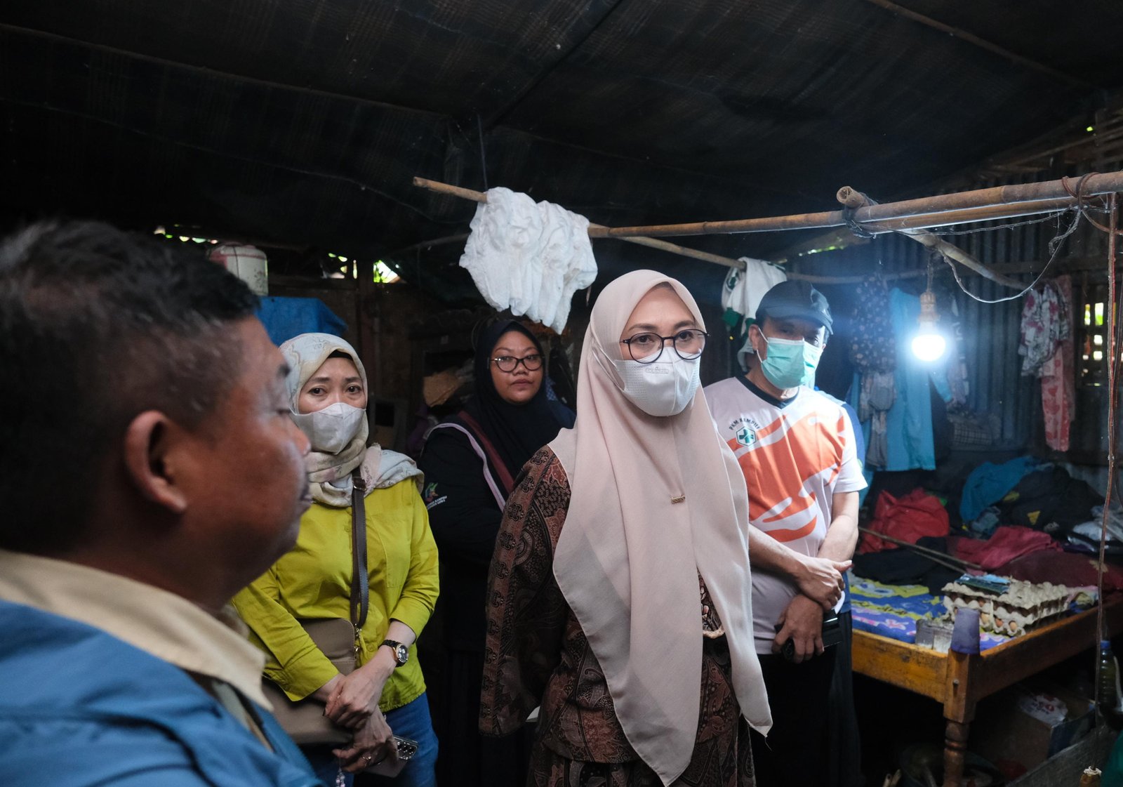 Bupati Gowa Hj Sitti Husniah Talenrang saat mengunjungi salah seorang warga miskin ekstrim di Pallangga.